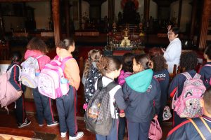 Em maio e junho deste ano, o projeto “Educando pela Cidade” contemplou 221 alunos do 3º ano do ensino fundamental das Escolas Municipais Ângela Martins de Oliveira (Jardim Dora), Odário Ferreira da Silva (Jardim Belém/Palmeiras) e Professora Maria Odete Cará Gouvêa (Jardim do Lago), com visitas guiadas ao Templo Budista Nambei Shingonshu Daigozan Jomyoji.