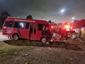 Um microônibus fretado teria se envolvido em um acidente, em situação a ser apurada. O veículo transportava 21 pessoas – destas, o Samu registrou duas vítimas graves e as demais com ferimentos leves. Não foram registrado óbitos no local.