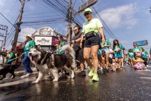 Além da caminhada, a programação incluiu o cadastro para castração gratuita e a entrega de kits, água e frutas aos inscritos que contribuíram com a doação de ração para cachorro sem corante.