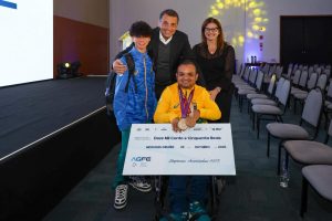 Um dos momentos mais emocionantes da noite foi a entrega de homenagens às empresas associadas à AGFE e o reconhecimento ao Club Med pelo apoio institucional. Ao final das homenagens, o conselheiro consultivo Claudio Costa realizou a entrega simbólica de um cheque no valor de R$ 12,1 mil ao atleta paralímpico Maciel Santos, destinado à aquisição de uma nova cadeira de rodas elétrica. Maciel, que nasceu com paralisia cerebral e conquistou o ouro nos Jogos Paralímpicos de Londres, em 2012, é exemplo de superação e inspiração.
