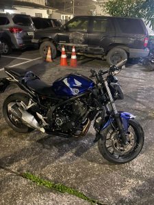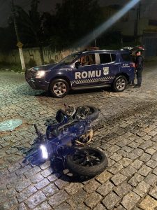 A ocorrência teve início por volta das 21h55, quando a equipe realizava patrulhamento pela avenida João Batista Fitipaldi e avistou uma motocicleta de grande porte, modelo Honda CB 500F, de cor azul, cujo condutor, ao notar a presença da guarnição, atravessou o canteiro central e acessou a contramão, iniciando uma fuga. A equipe iniciou acompanhamento tático, que terminou na rua Adhemar Pereira de Barros, no Parque Maria Helena, onde o suspeito perdeu o controle do veículo e caiu ao solo, sendo detido em seguida.