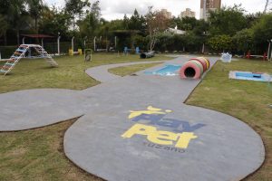 O espaço conta com 1,5 mil metros quadrados e oferece diversos equipamentos voltados ao lazer e à prática de agility, como rampa, escada, obstáculos e um túnel construído com pneus reciclados. Além de entreter os pets, a reutilização de materiais contribui para a preservação do meio ambiente. O PlayPet também dispõe de uma piscina em formato de osso.