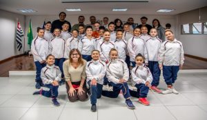 A prefeita Mara Bertaiolli recebeu, nesta sexta-feira (15/08), na Prefeitura de Mogi das Cruzes, integrantes das equipes de Ginástica Rítmica para celebrar os resultados mais recentes em competições, como o Torneio Regional do Sudeste.