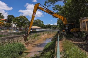 Na área ambiental, foi realizada a limpeza preventiva do Ribeirão Nogueira e a ação de transformação de entulho de demolição em cascalho com a máquina do Condemat+, iniciativa direcionada à melhoria das práticas de manejo de resíduos e reaproveitamento de materiais, contribuindo para processos mais sustentáveis no município.