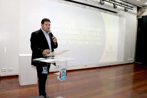 A Prefeitura de Suzano, por meio da Secretaria de Desenvolvimento Econômico e Geração de Emprego, firmou na tarde desta terça-feira (17/06) um convênio com a Universidade de São Paulo (USP) para atualizar o Plano Diretor de Turismo do município. O estudo será realizado pela Escola de Comunicações e Artes (ECA) até agosto de 2026, sem custos para o município. A proposta visa traçar diretrizes que estimulem o desenvolvimento sustentável do turismo local.